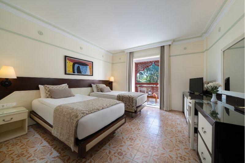 The rooms are designed with simplicity and functionality in mind, offering a relaxing retreat after active days in the sun. Each room features a balcony or terrace, centrally controlled air conditioning, and all the essentials for a comfortable stay.