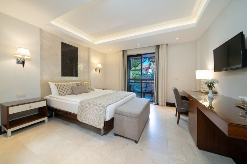 To upgrade to this room, please choose the “Sea View Room Upgrade” option at check-out. While this option applies to the upgrade category, the room itself does not have a sea view.